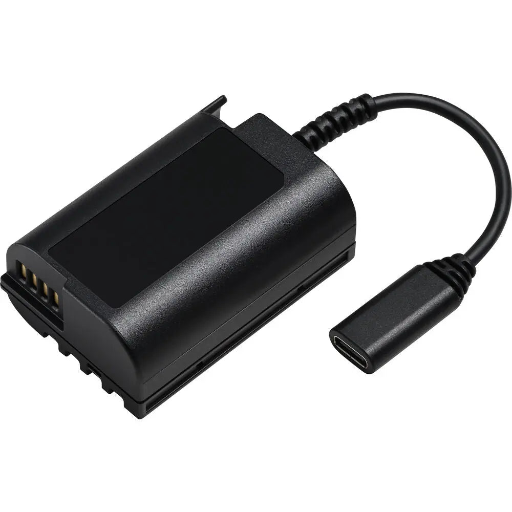 Dedicated to the Panasonic Lumix DC-GH7 mirrorless camera, the DMW-DCC18 DC Coupler is used to replace the internal battery and power the camera using AC power for longer, uninterrupted shooting sessions, specifically when the camera's USB-C port is being used. The separately available DMW-ACC11 AC Power Adapter Cable is required for use with this DC coupler. The power adapter is required when recording to a USB SSD, and this coupler is required when the USB port is occupied.