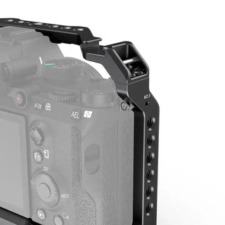 SmallRig Light Cage for Sony A7 III A7R III A9 2918 maintains access to the camera's controls and features a variety of mounting options.In addition to one cold shoe mount and multiple 1/4\"-20 and 3/8\"-16 threaded holes, this formfitting aluminum cage features several ARRI-style mounts for preventing accessories from twisting when mounted on the cage. The cage also incorporates an anti-twist design with an M2.5 screw fixed to the strap hole in addition to the 1/4\"-20 camera mounting screw so your camera can't move around in the cage. You can attach SmallRig Top Handle 1984 or SmallRig Wooden Side Handle 2093 for hand-held shooting, and SmallRig Cable Clamp 3104 to protect the HDMI cable and port. ARRI-style mounts on the top and side are provided to attach SmallRig ARRI Locating Handle 2165 or SmallRig Ball Head Magic Arm 2115. Besides, a screwdriver is built into the bottom of the cage for tightening the camera screws.