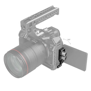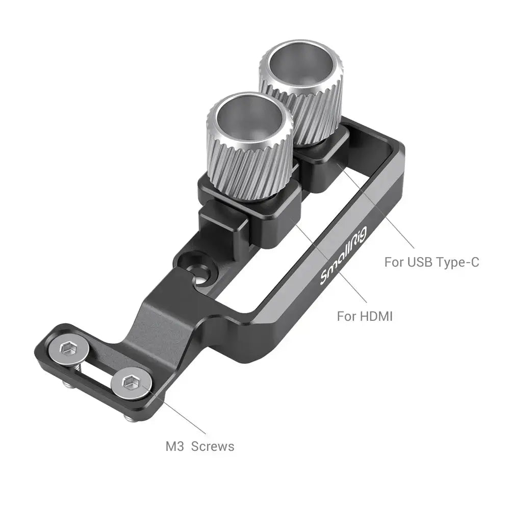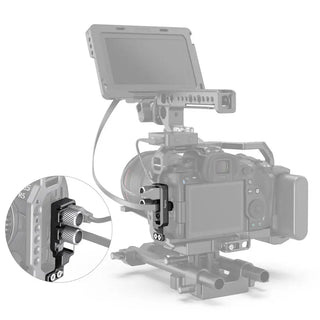 SmallRig HDMI and USB-C Cable Clamp for EOS R5 and R6 Cage 2981 is compatible with SmallRig Cage 2982. Designed to prevent the camera's HDMI and USB Type-C cables from accidentally disconnecting, this clamp attaches to the side of the cage using two M3 Screws and fixes the cables using two knurled 1/4"-20 screws. Each screw adjusts a sliding block that can be tightened to accommodate varying diameters. This Cable Clamp is constructed of a sturdy aluminium alloy and comes with an Allen wrench.